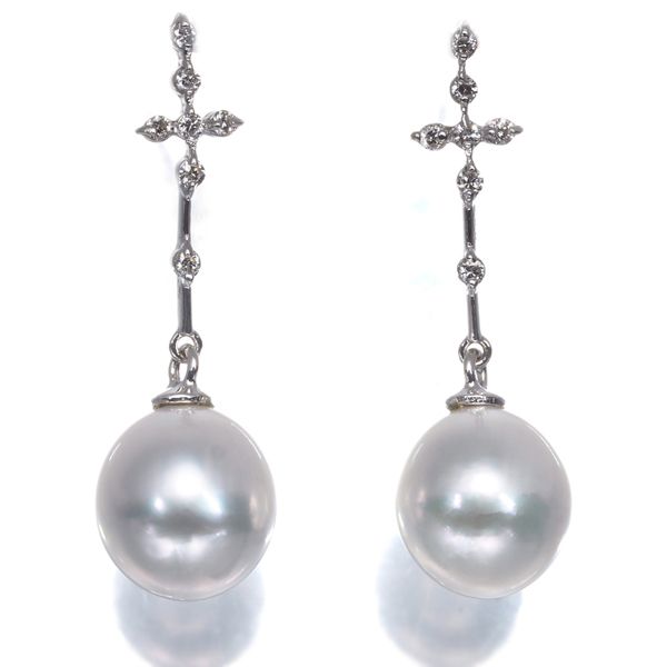 パール 真珠 7.8 mm ダイヤ ダイヤモンド 0.04 ct ピアス K 18 WG 177829