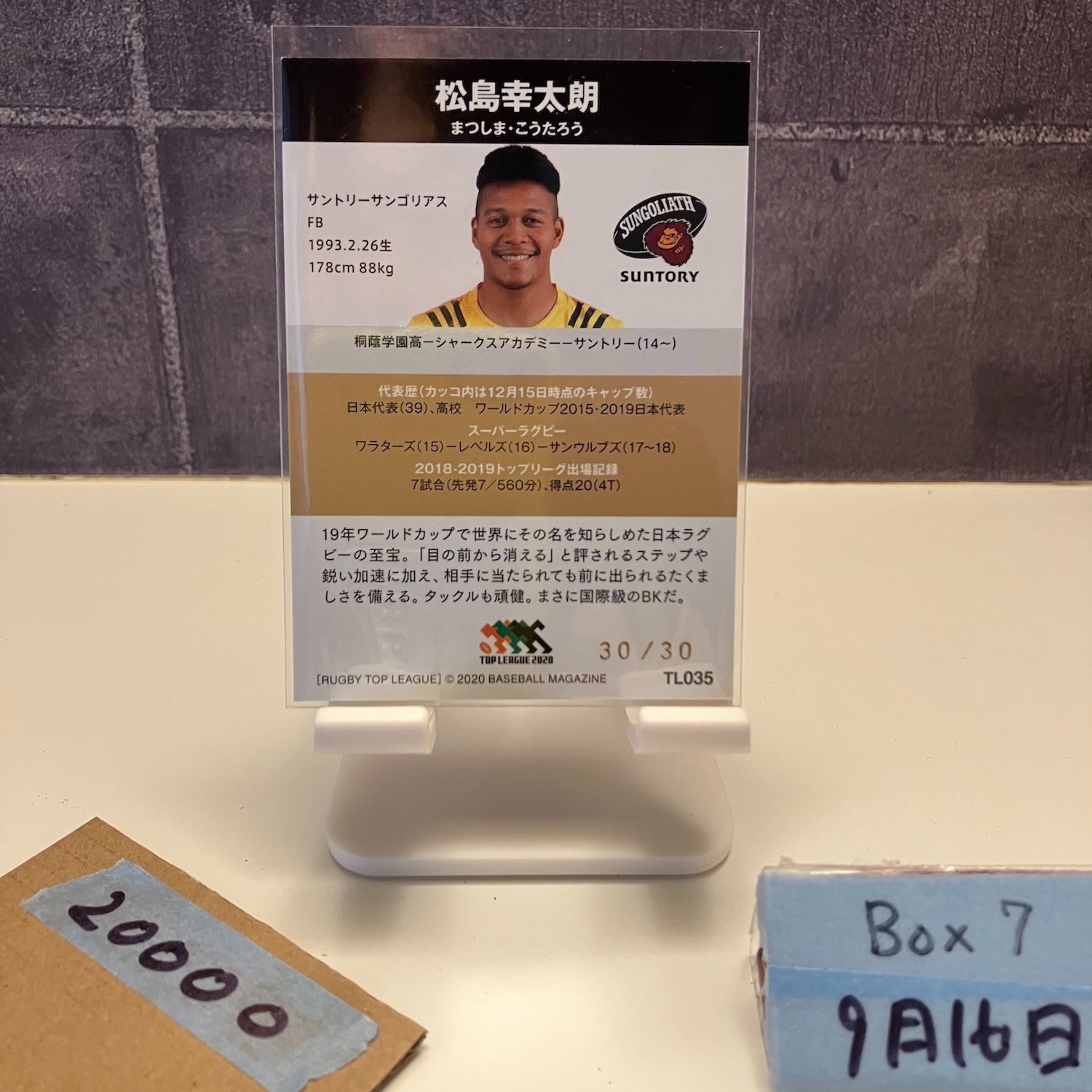2020 BBM TOP LEAGUE 松島幸太朗 30 直筆サイン サントリーサンゴリアス ラストナンバー カード