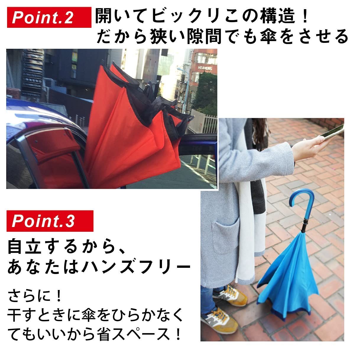 【雨の日のストレスフリーを実現する逆さ構造】逆折り式傘/自立式/巻きやすい太巻きベルト/グラスファイバーの傘骨8本/ハンドル:合成皮革