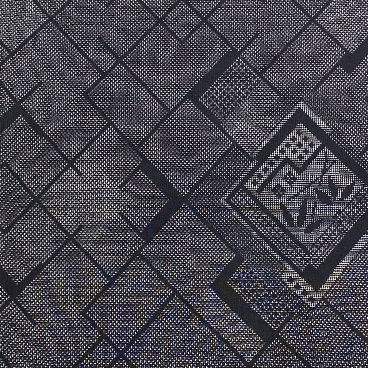 反物 秀品 大島紬 証紙 菱 幾何学模様 黒灰 正絹