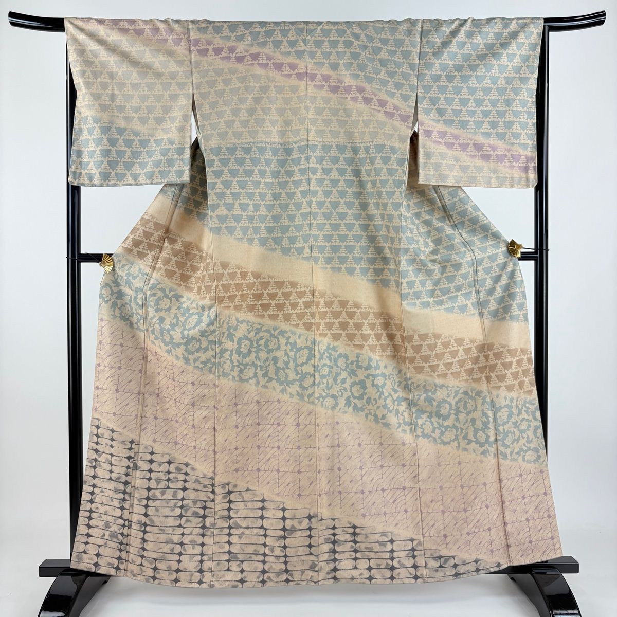 訪問着 身丈162.5 cm 裄丈67 M 袷 紬地 鈴乃屋 鱗紋 幾何学 ベージュ 正絹