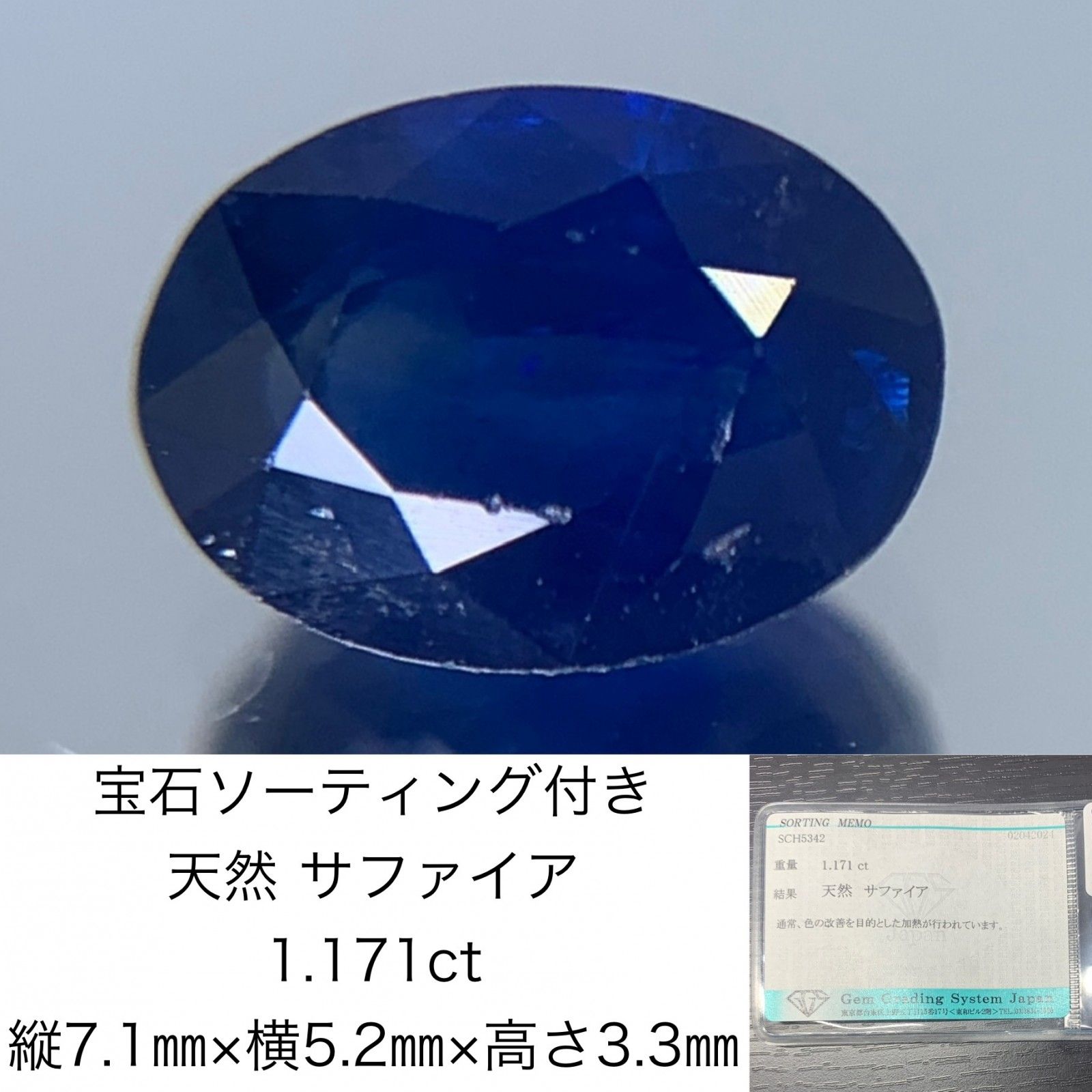 サファイア 1.171 ct 宝石ソーティング付き 縦7.1㎜×横5.2㎜×高さ3.3㎜ ルース 裸石 1420 Y