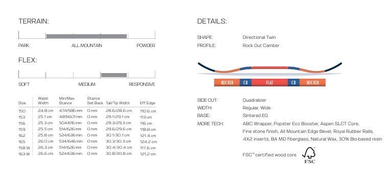 パ ク、バックカントリーを問わず、その圧倒的なフリースタイル性能という起源に忠実でありながら、何年もかけて、長めのノーズと深いパウダーに適したテールのシェイプへと進化してきました。
