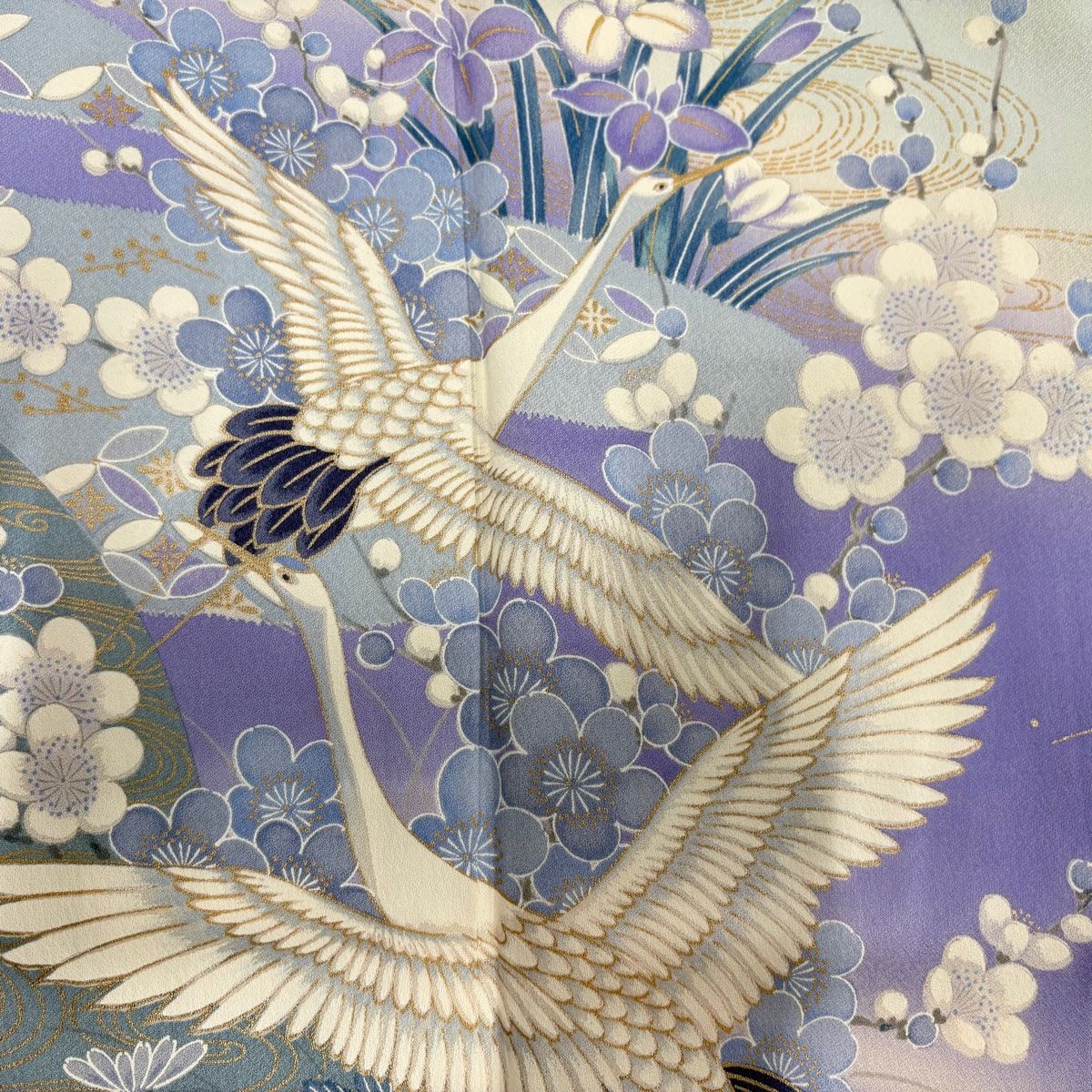 振袖 身丈154 cm 裄丈62 S 袷 鶴 枝梅 金彩 染め分け 水色 正絹 秀品