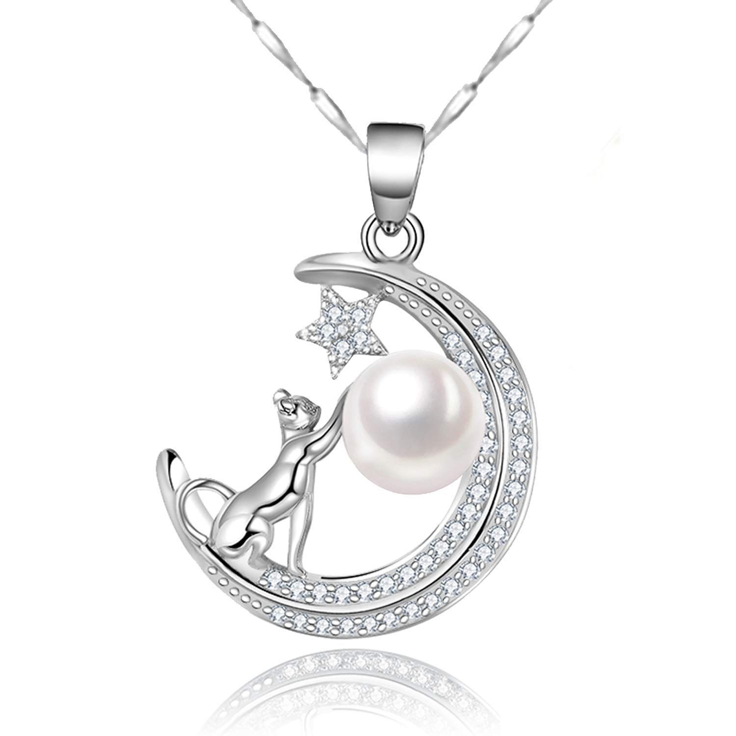 数量 ブランド 三日月 プレゼント女性 パール ネコ 彼女 レディース 母親 ネックレス ギフトボックス付き シルバー