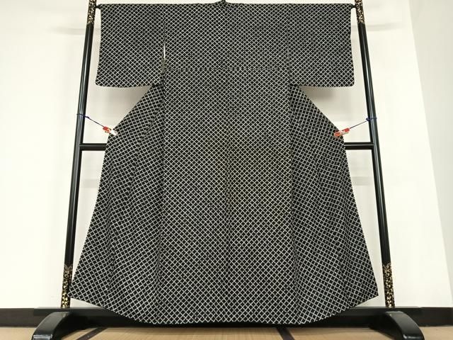 平和屋着物 上質な小紋 総絞り 網目文 黒地 正絹 zg