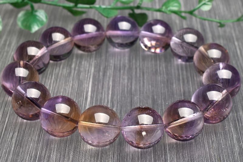 1点物 AAA バイ アメトリン 14 mm ブレスレット パワーストーン 天然石 _U 7349