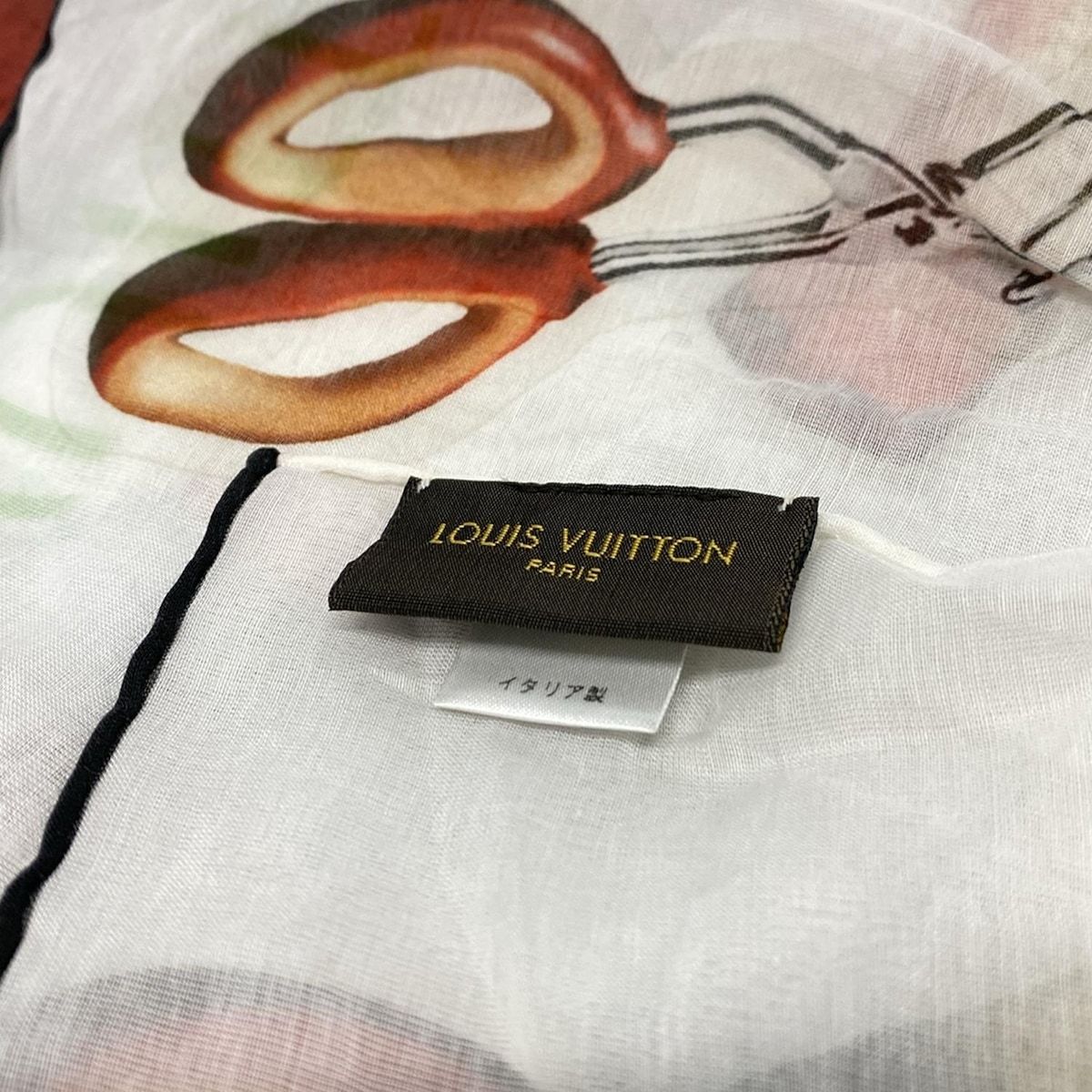 LOUIS VUITTON ルイヴィトン ストール ショール エトールスティッカー MP 1569 アイボリー×マルチ コットン シルク
