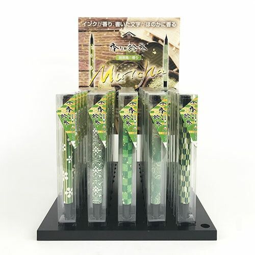 ほのかにインクが抹茶風の香りがします。書いた文字もしばらくの間香りが残ります。穂先は太・細の両用タイプ。和文具・和雑貨・お土産物として。5種各10本合計50本のDPセットです。木製什器の他、バックパネル、サンプル1本付き【検索ハッシュタグ】#春光園#筆ペン#ペン#筆ペン香りの絵巻#和#和モダン#セット#什器セット#什器#ディスプレイ#ディスプレイセット