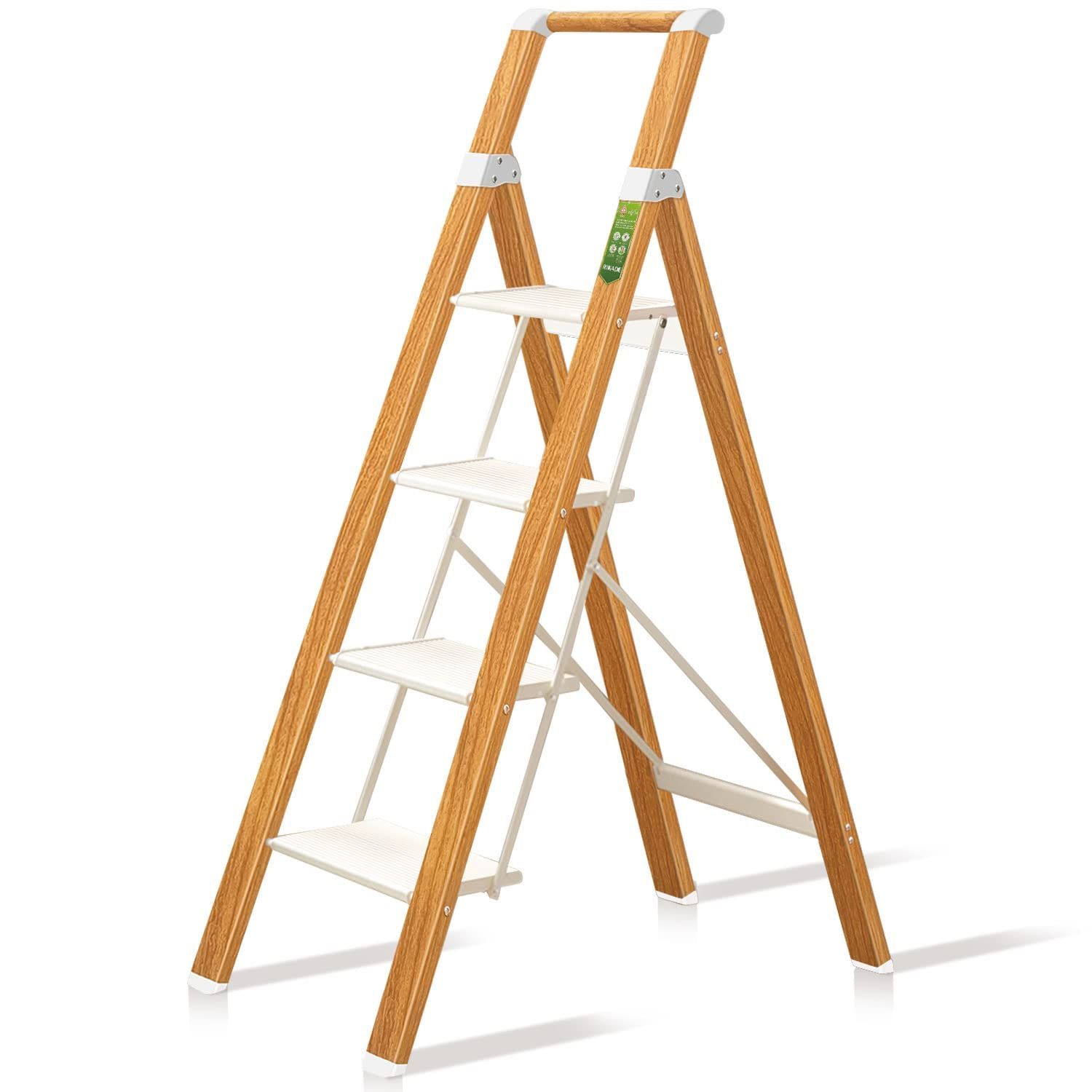 持ち運び コンパクト 掃除 洗車 4段 省スペース 屋外 室内 軽量 アルミステップ すき間収納 ステップスツール ステップ台 ハシゴ 滑り止め付 はしご 梯子 踏み台 アルミ脚立 木の色 取っ手付き 手すり 折りたたみ脚立 キャタツ おしゃれ き