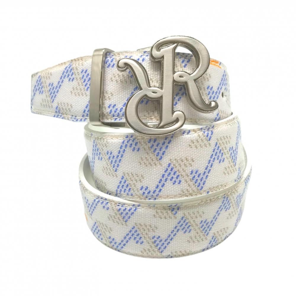 超 レザレクション ベルト 白×ブルー 総柄 ロゴバックル レディース ゴルフウェア Resurrection