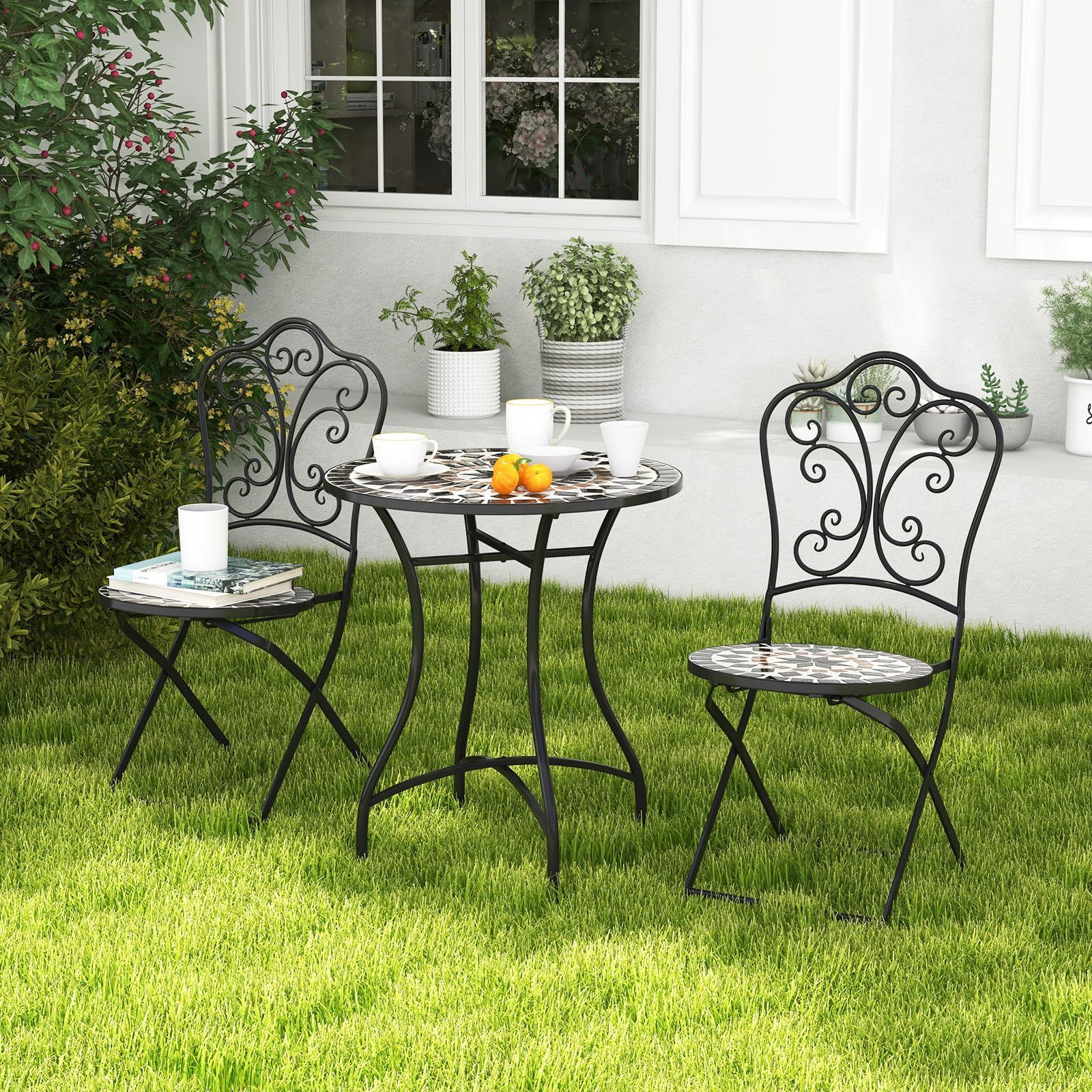 アイアン製 屋内 おしゃれ 屋外 ベランダ アウトドア テラス パティオ 組立簡単 庭 机 アンティーク調 モザイク柄 防水 ブラック タイルテーブル 耐荷重50 kg 直径60 cm ガーデンテーブル TANGKULA