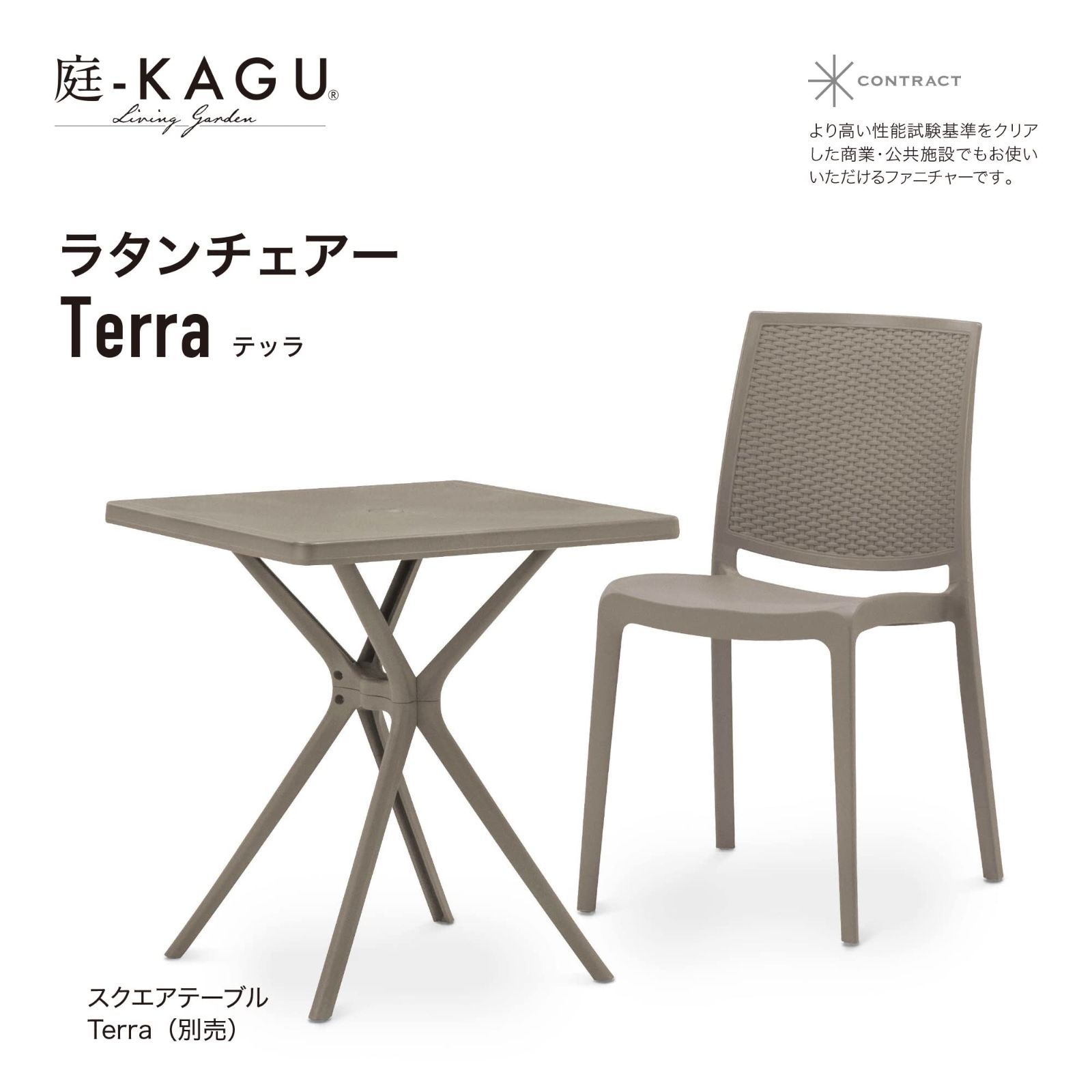 コントラクト品質 ガーデンテーブル スクエアテーブル ガーデンチェアー ポリプロピレン Terra 商業 公共施設 ラタンチェアー MPF-01 CT タカショー