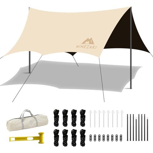Minezaki オクタタープ 3 m 4 5 2025強化版 ブラックラバーコーティング 軽量 キャンプ タープ 遮光タープ テントとの取り組み 防水 防紫外線 雨よけ 断熱 UPF 50 紫外線防護 5000mm耐水圧 210 D高密度オックスmp