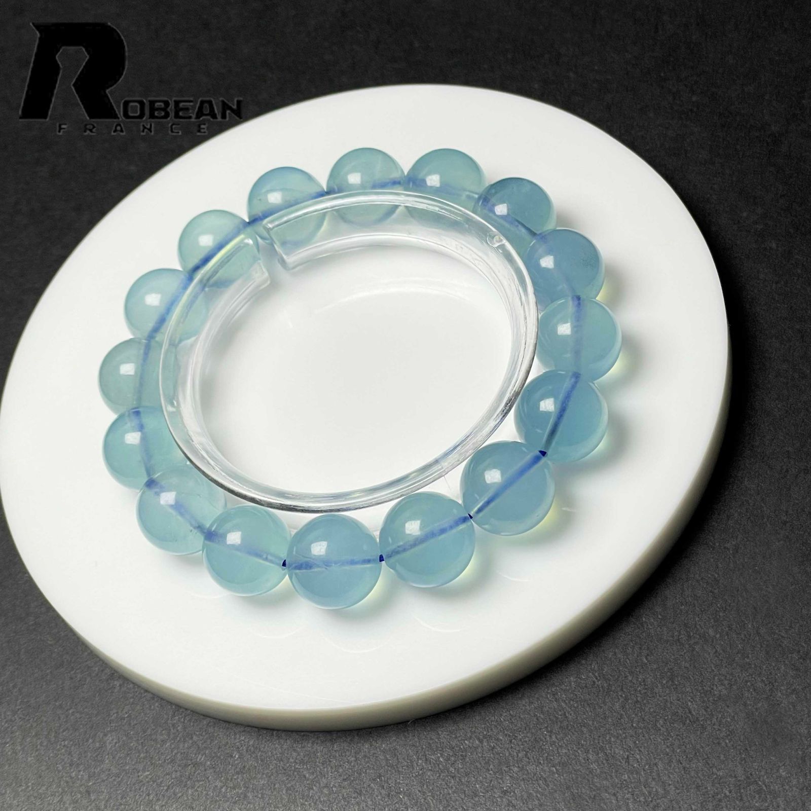 EU製 定価34万円 ROBEAN ブルーアクアマリン パワーストーン ブレスレット 天然石 原石 お守り プレゼント 13.3-13.7 mm