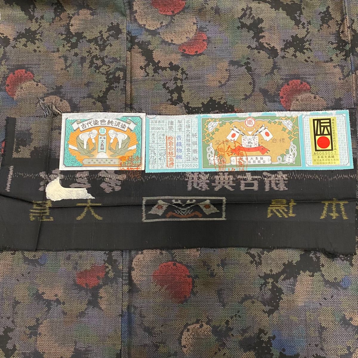 大島紬 身丈164.5 cm 裄丈66 M 袷 純泥染 証紙 雪輪 墨色 正絹