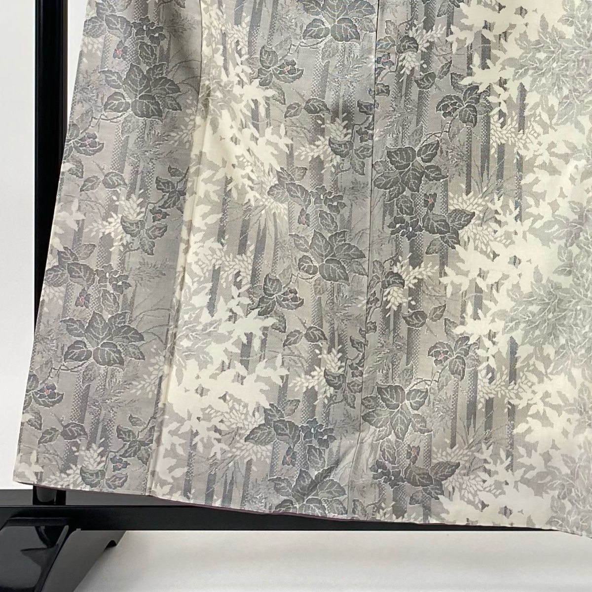 紬 身丈160 cm 裄丈64 M 袷 名古屋帯セット 葉と実 シルエット 灰色 正絹 秀品