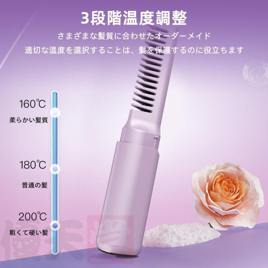 ヘアアイロンブラシ ホットヘアブラシ コードレス ヘアアイロン ミニ 超軽量160 g 3段階調温 内巻き 外巻 直髪 火傷防止 美髪 旅行用 携帯用 プレゼント