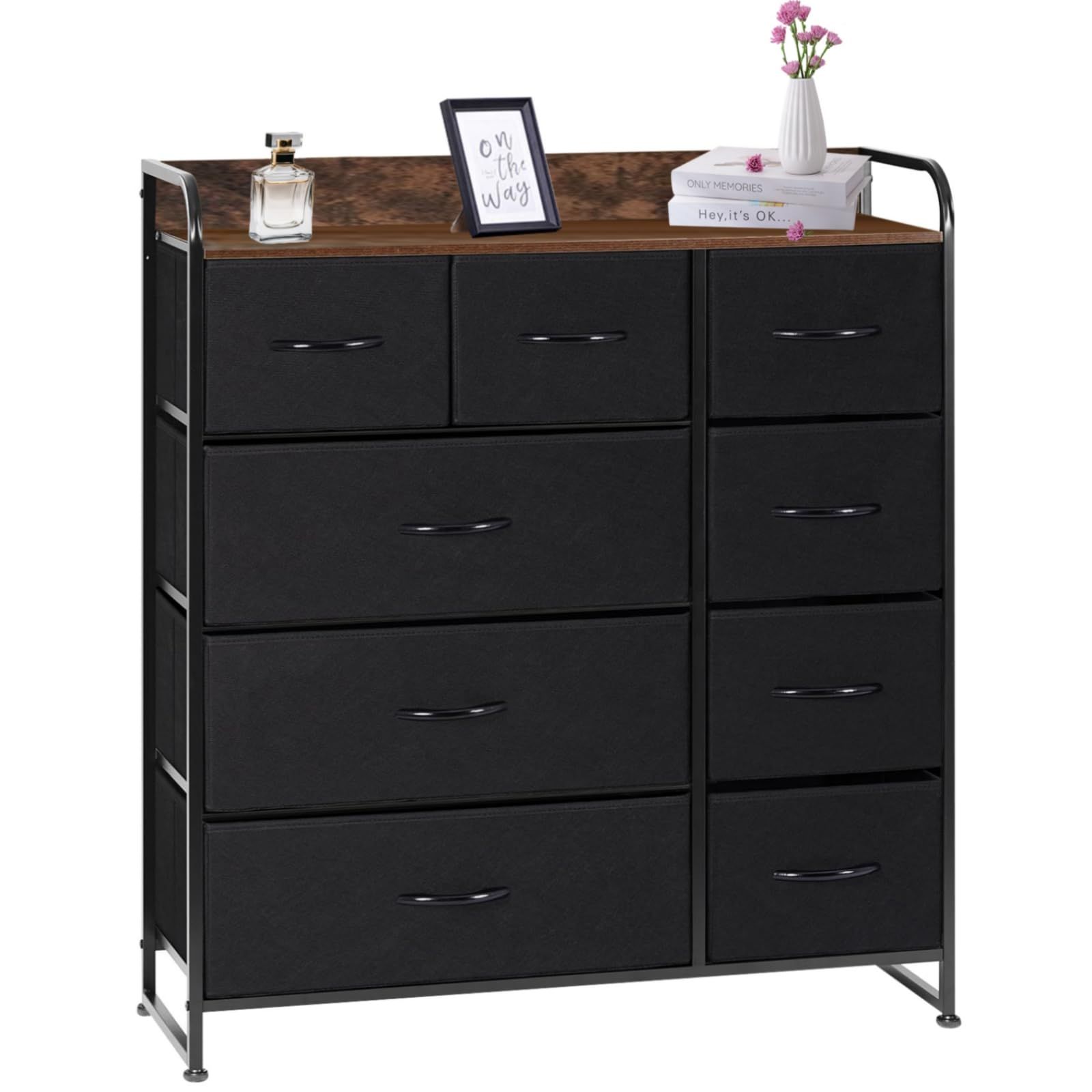 EdoErgo タンス 収納 チェスト 布製 引き出し 洋服収納 リビング収納 大容量 衣類収納 洋服タンス 衣装棚 箪笥 木製天板付き 簡単組立 転倒防止 4段9杯 AG-CTG 01