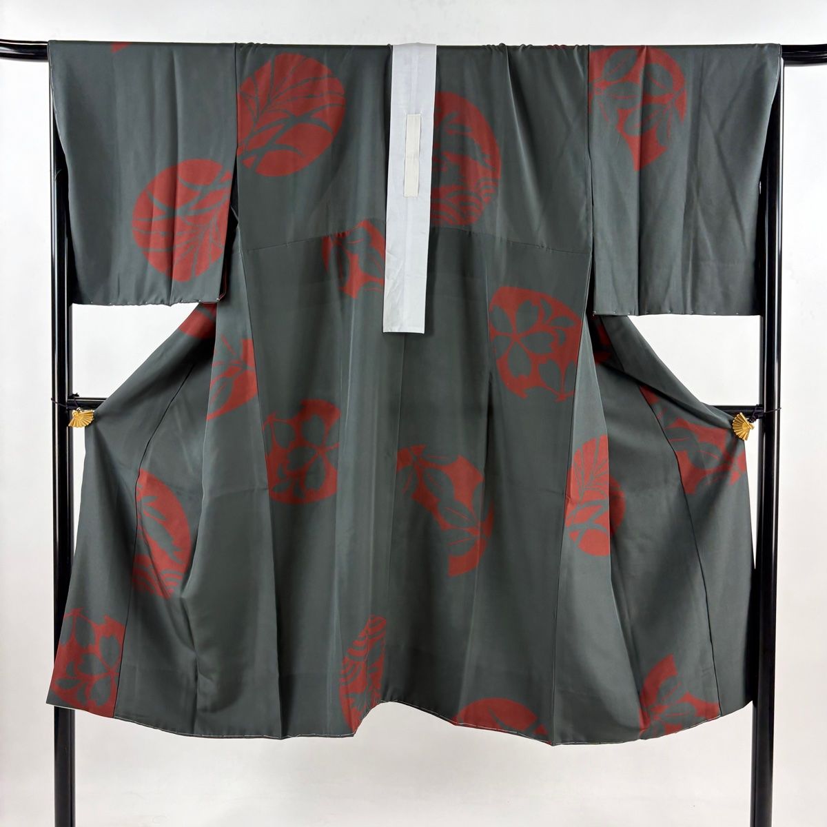 長襦袢 身丈128.5 cm 裄丈68.5 L うさぎ 萩 黒灰 正絹 秀品