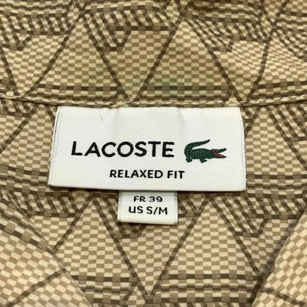LACOSTE オールオーバーモノグラムプリントオープンカラーシャツ サイズS|M ベージュ 19