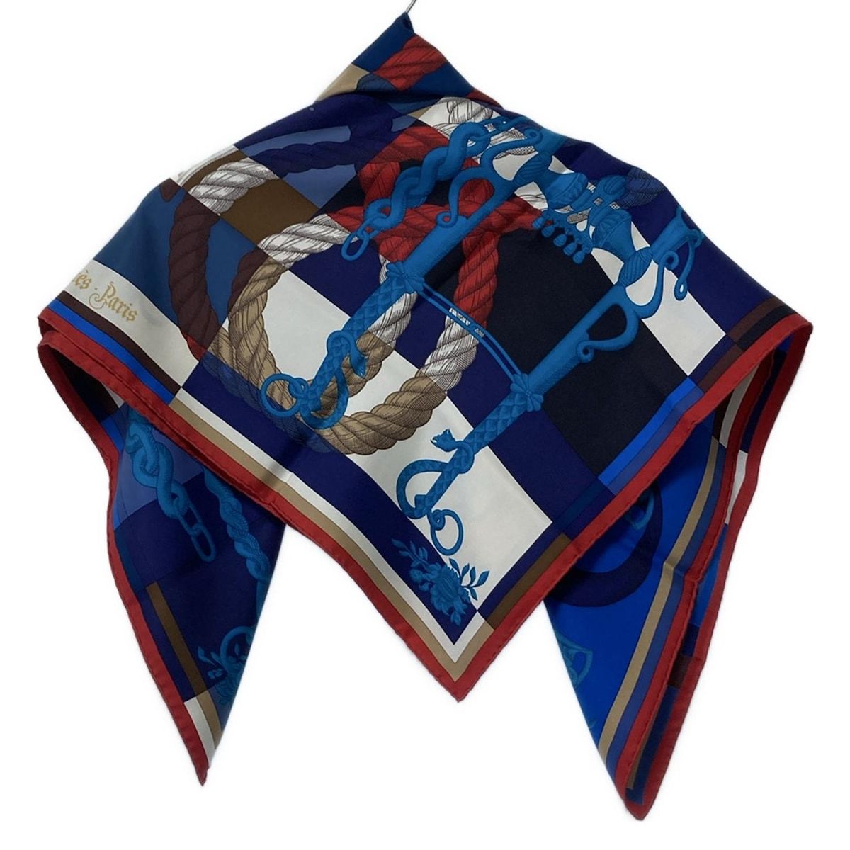 HERMES エルメス スカーフ カレ90 ブルーグレー×レッド×マルチ Della Cavalleria