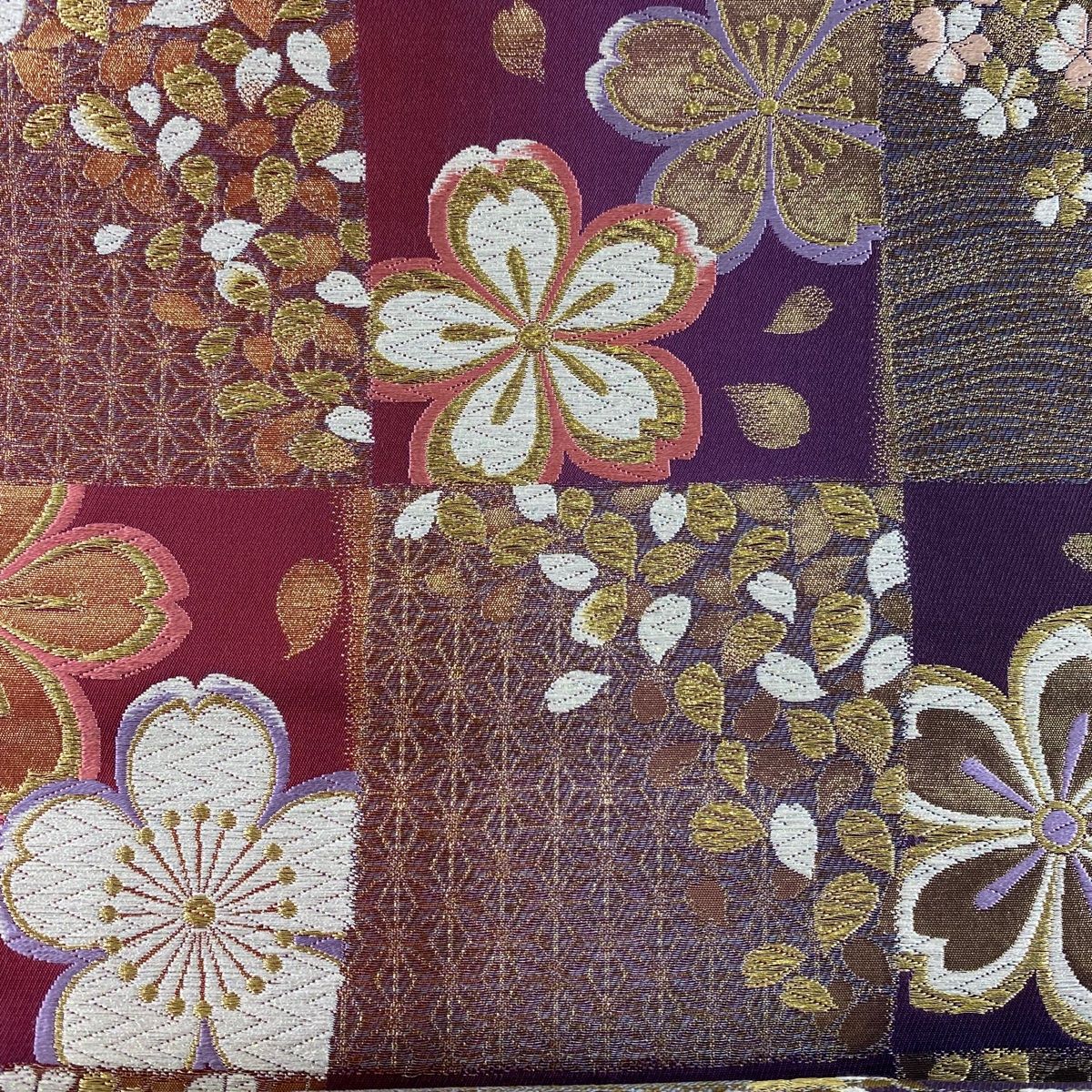 袋帯 秀品 市松麻の葉桜文 紫 六通 正絹