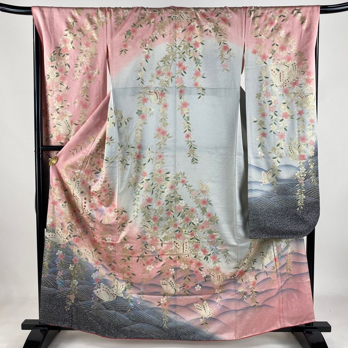 振袖 身丈162 cm 裄丈67 M 袷 蝶 桜 金銀彩 染め分け ピンク 正絹 秀品