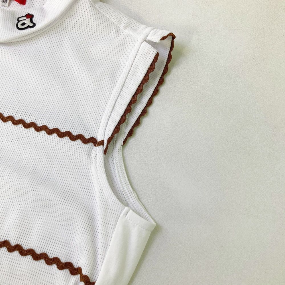 サイズ 38 アルチビオ タートルネック ノースリーブTシャツ なみなみボーダー柄 ホワイト系 ゴルフウェア レディース ストスト
