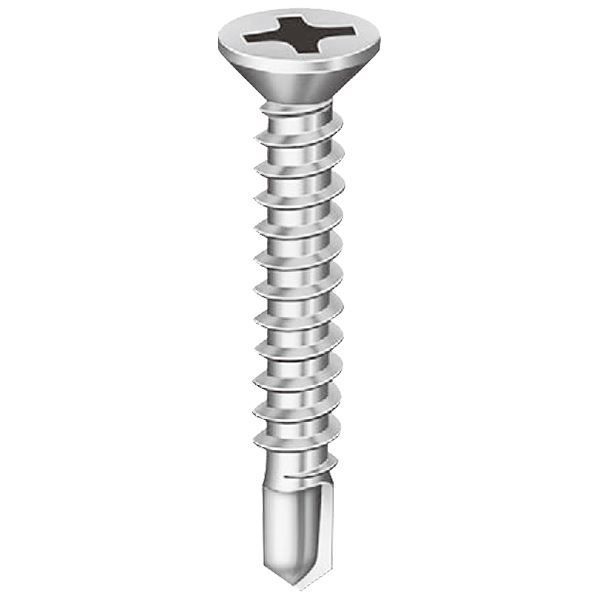 座ぐり穴付金物+鉄骨用ドリルビス。便利な小袋入り。建築板金外壁などで軽量型鋼(C型鋼)厚さ1.6ミリ以上の下地材に金具等を下穴なしで取り付ける際に使用します。取付物の厚み+下地の厚み+10mm〜14mm(4mm径で約10ミリ、5mm径で約12ミリ、6mm径で約14ミリ)の長さのねじを使用します。