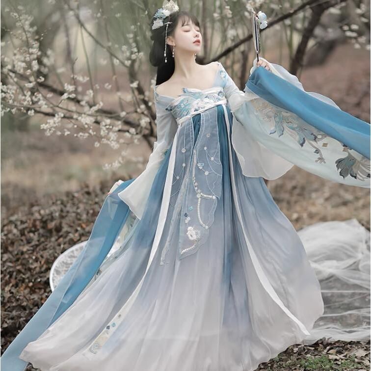 仙女古典美人服 振袖唐装漢服 豪華刺繍レディース中国魏晉風漢服 チャイナ服 通常着 仮装 中国古代衣装 女性 舞台衣装 コ