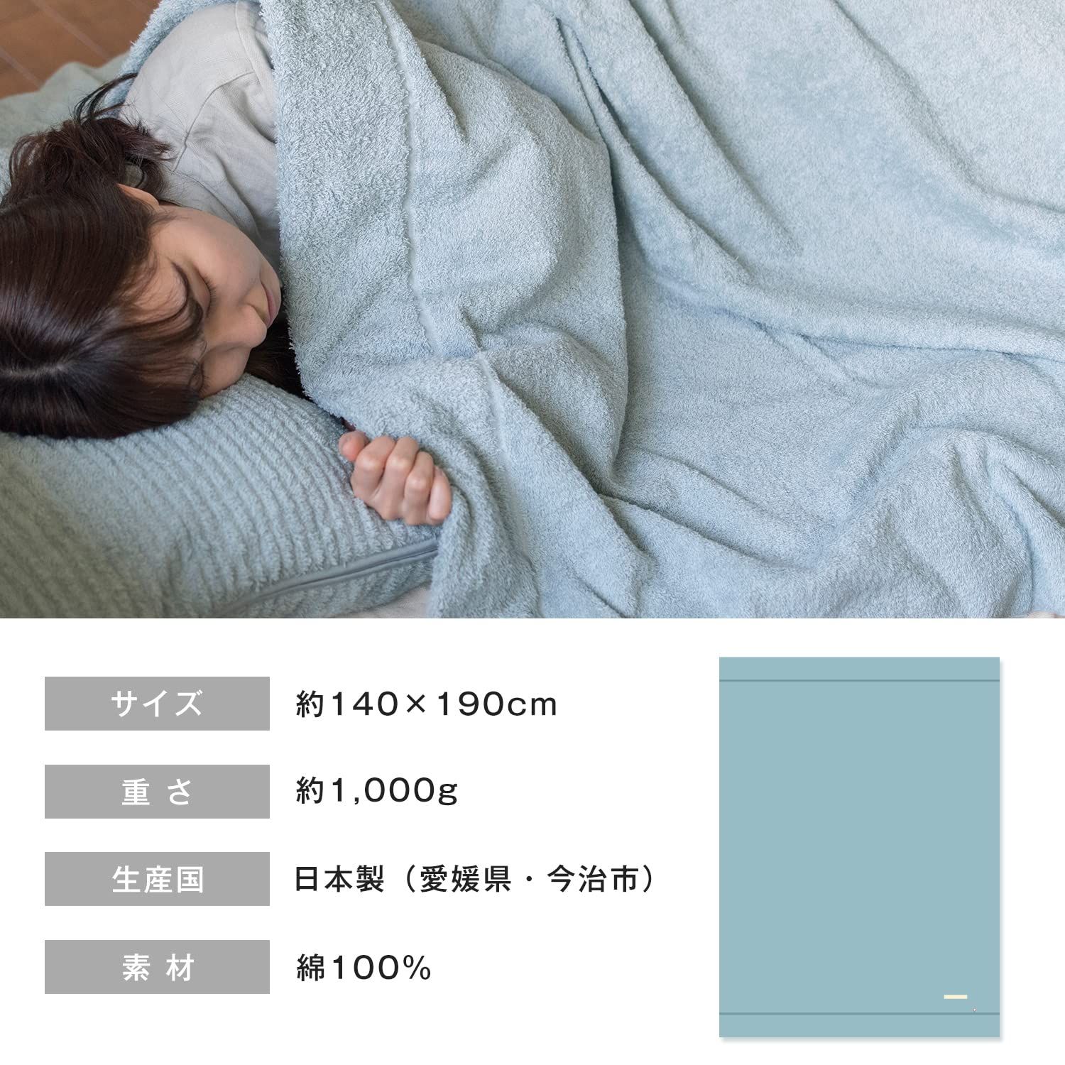 【商品詳細】サイズ:約140cm×190cm 重さ:1000g 素材:綿100% 原産国:日本(愛媛県・今治市) 今治認定番号:第2016-1071号