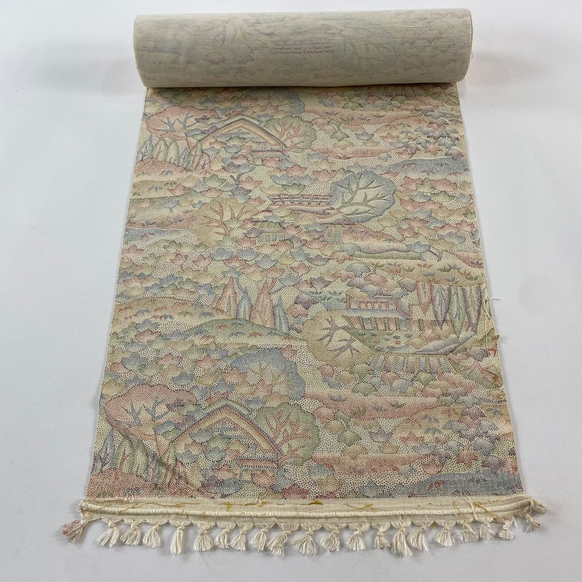 反物 秀品 小紋 紬地 風景 建物 ベージュ 正絹