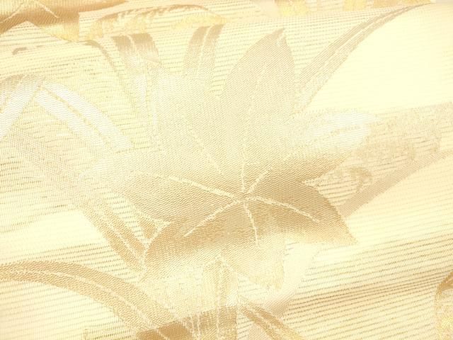 平和屋着物 夏物 九寸名古屋帯 草葉文 金銀糸 正絹 cm