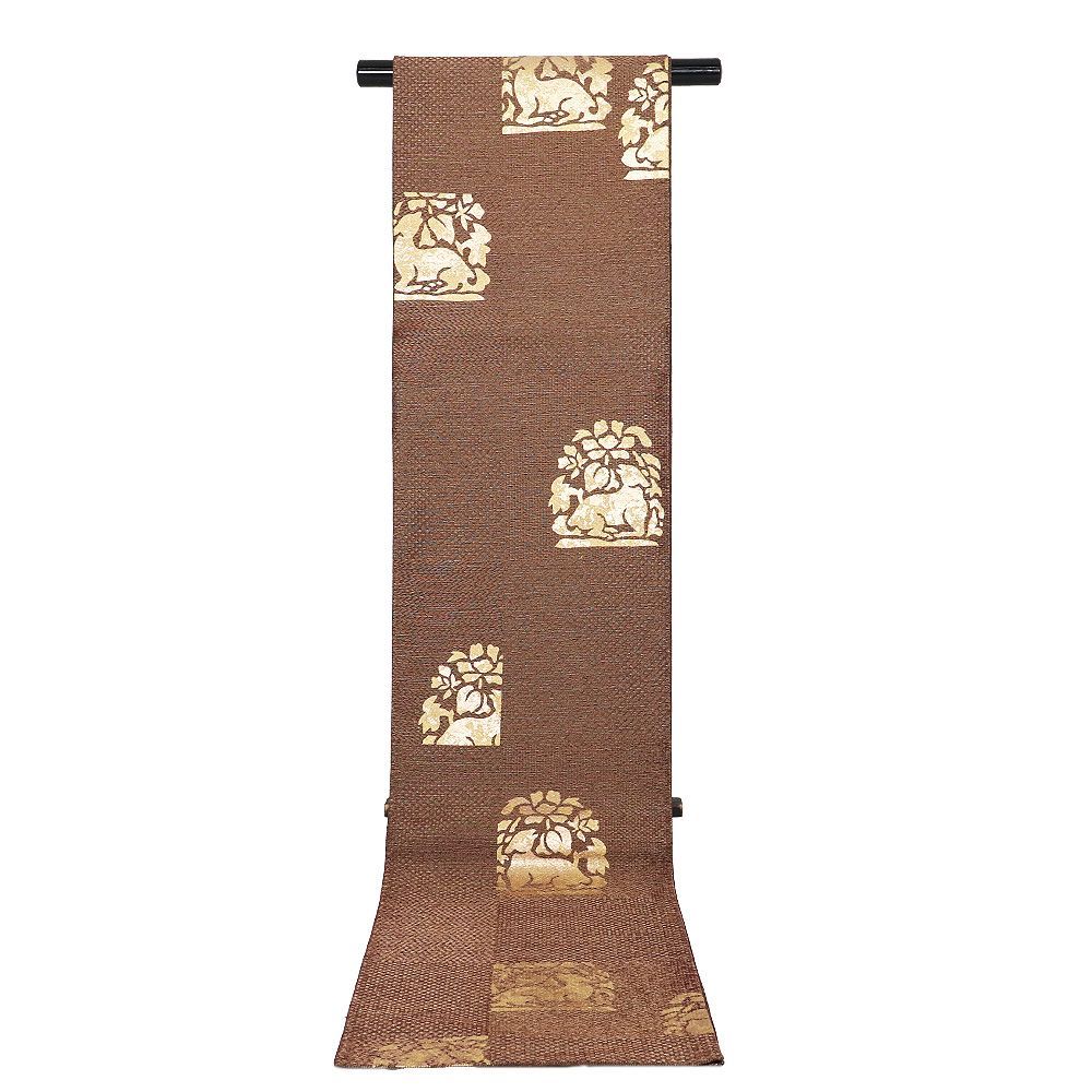 お洒落訪問着用 手織り紬 袋帯 正絹 赤茶 金 金箔 花兎 Lサイズ F 8349 レディース シルク ギフト30代 40代 50代