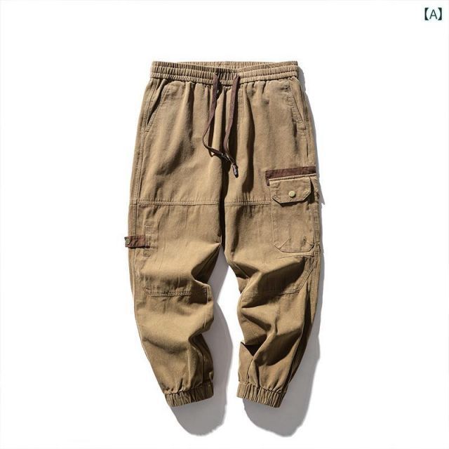 - XL 75-82.5 k メンズ ファッション 服 男性用 オシャレ シンプル 大人 かっこいい 大きいサイズ ストリート 紳士服 アメリカン レトロ ワークパンツ ゆったり 機能的 九分丈 ズボン カジュアル パンツ
