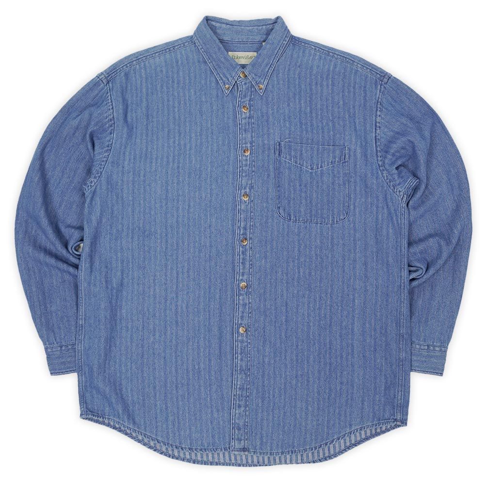 ストライプ柄のインディゴデニムをオーセンティックなボタンダウンシャツに仕立てた、非常に珍しい仕様の一枚。