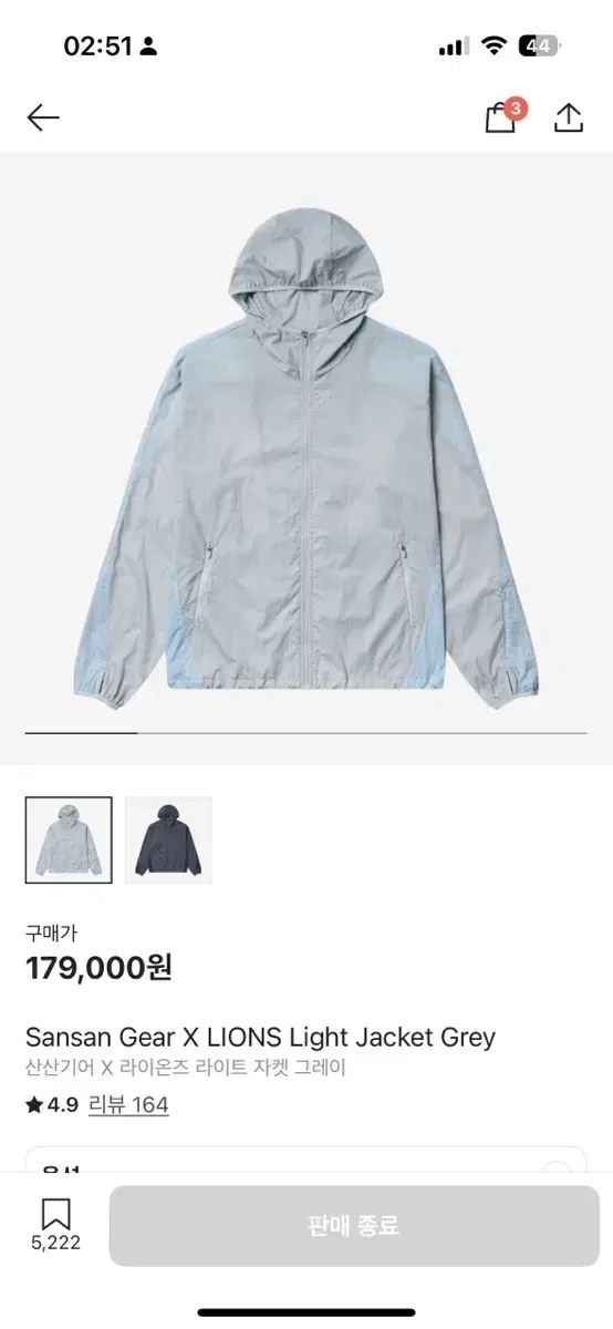 サムスン ライオンズ x SAN GEAR ライト ジャケット グレー s