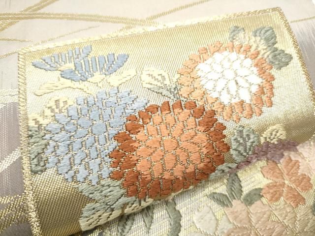 平和屋着物 六通柄袋帯 唐織 色紙草花文 金糸 正絹 hy
