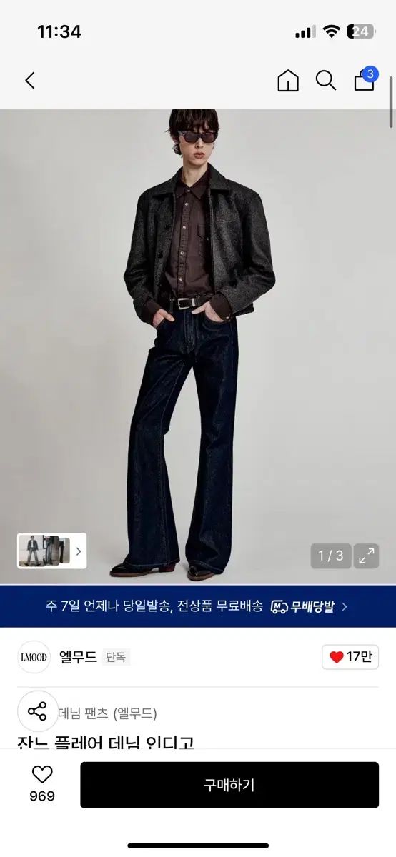 エルムード ジャンヌ フレア デニム インディゴ 46 です