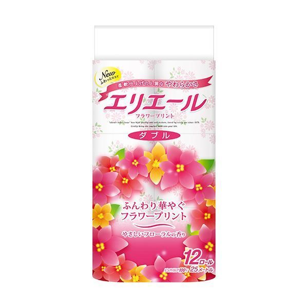 まとめ 大王製紙 エリエールトイレットティシュー フラワープリント ダブル 芯あり 香つき 25 m 12ロール