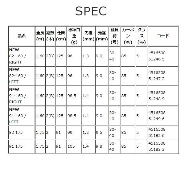船カレイ専用のエキスパートモデル。メッカ東北のみならず、全国津々浦々においてハイレベルの釣趣釣味を約束するショートモデル。チタントップCTSと高弾性ブランクスにより得られる目感度と手感度を高水準で実現。 攻めの掛調子「91」と低活性時でも違和感なく喰わせる「82」を用意すると共に、左右別のスパイラルガイド仕様はトーナメンターも納得のアプローチを可能とする。