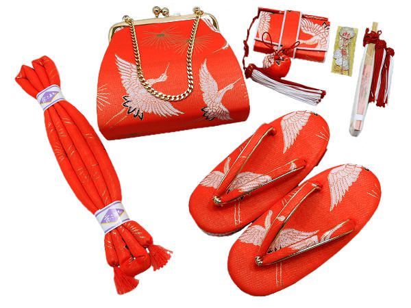 着物美人 み 七五三 女の子 箱セコセット 小 S 3歳 2歳 女の子着物用 七五三着物用 3歳着物用 女の子箱セコ 女の子草履バック 女の子帯締め 子供 女児 キッズ ジュニア 箱セコ 草履 16.2 cm バック 帯締め 朱赤 鶴 m 521205