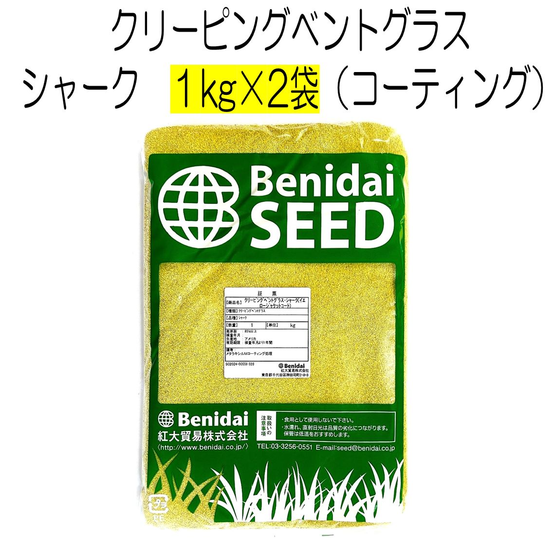 クリーピングベントグラス 品種名 シャーク コーティング種子 2 kg 1 kg×2袋 紅大貿易 ゴルフ場のグリーン向け 寒地型