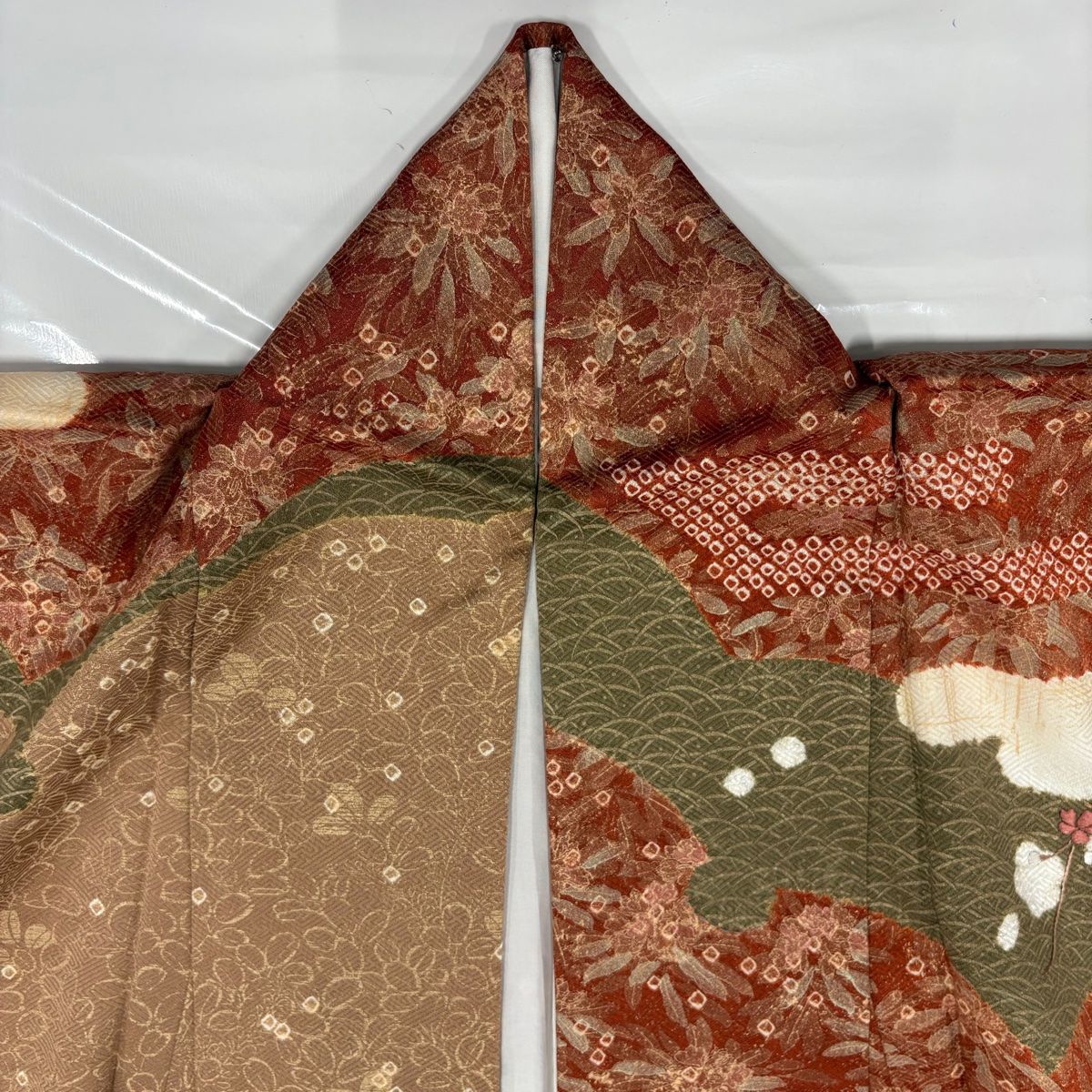 訪問着 身丈161 cm 裄丈64 M 袷 椿 ヱ霞 刺繍 絞り 赤茶 正絹 秀品