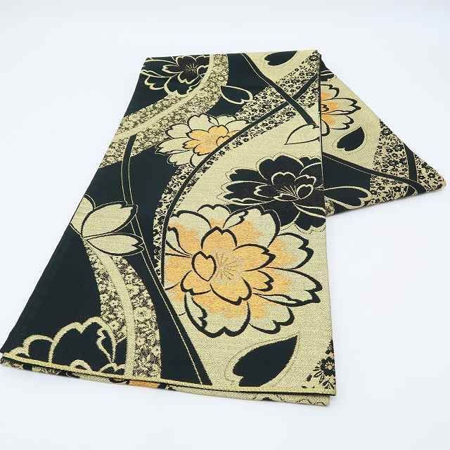 美品 正絹 着物 振袖用“甘×辛ミックスを花開く桜吹雪と八重桜”袋帯 A+43