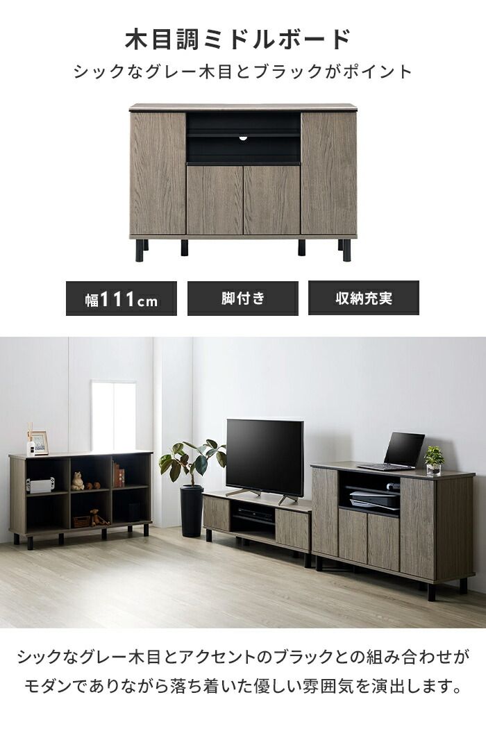 サイドボード ミドルボード キャビネット 幅111 木目調 テレビ台 ハイタイプ リビングボード シェルフ コード穴 ナチュラル