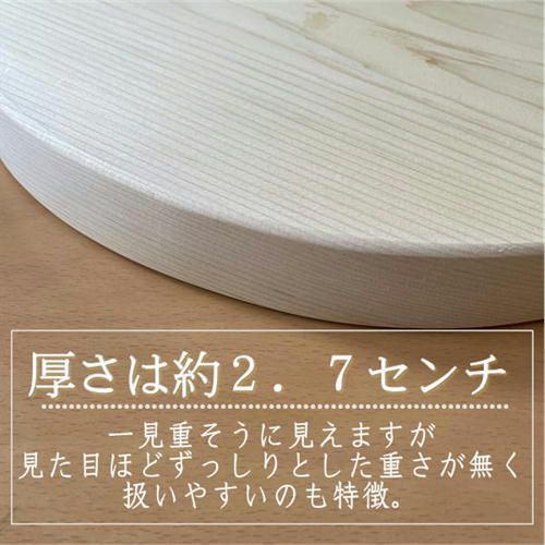 丸型 青森ひば まな板 奥津軽 サイズ 約30 cm 28 5 厚さ 約2 7 青森ヒバを知り尽くした職人が 一枚板から全て手作りで丁寧に仕上げているとても贅沢な一品 その為 木目 円形部分などそれぞれ表情が違うオンリーワンの商品です