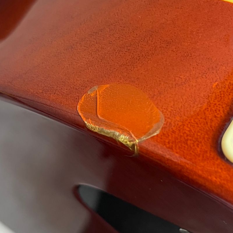 ネックはこの時期特有の極太グリップを採用しており、しっかりとした握り心地と安定感のあるプレイフィールを実現。ノーガード仕様により、メイプルトップの美しい杢目を存分に楽しむことが出来る。