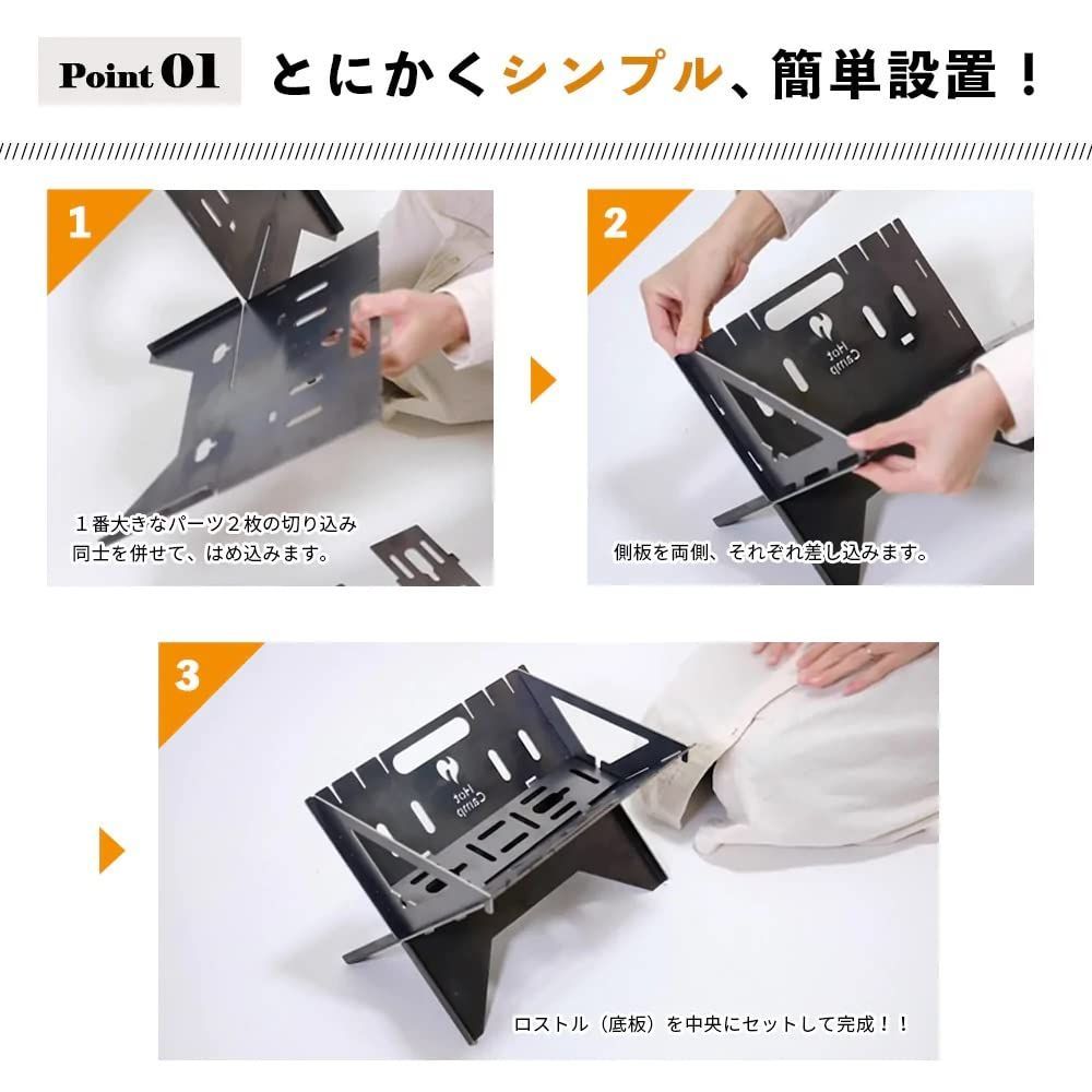 Hot Camp(ホットキャンプ) 焚き火台 FireBaseS ソロキャンプ 1-2人用 組立簡単 コンパクト収納 ロストル・五徳付き アウトドア 鉄製 日本製 (焚き火台基本セット) FB-01